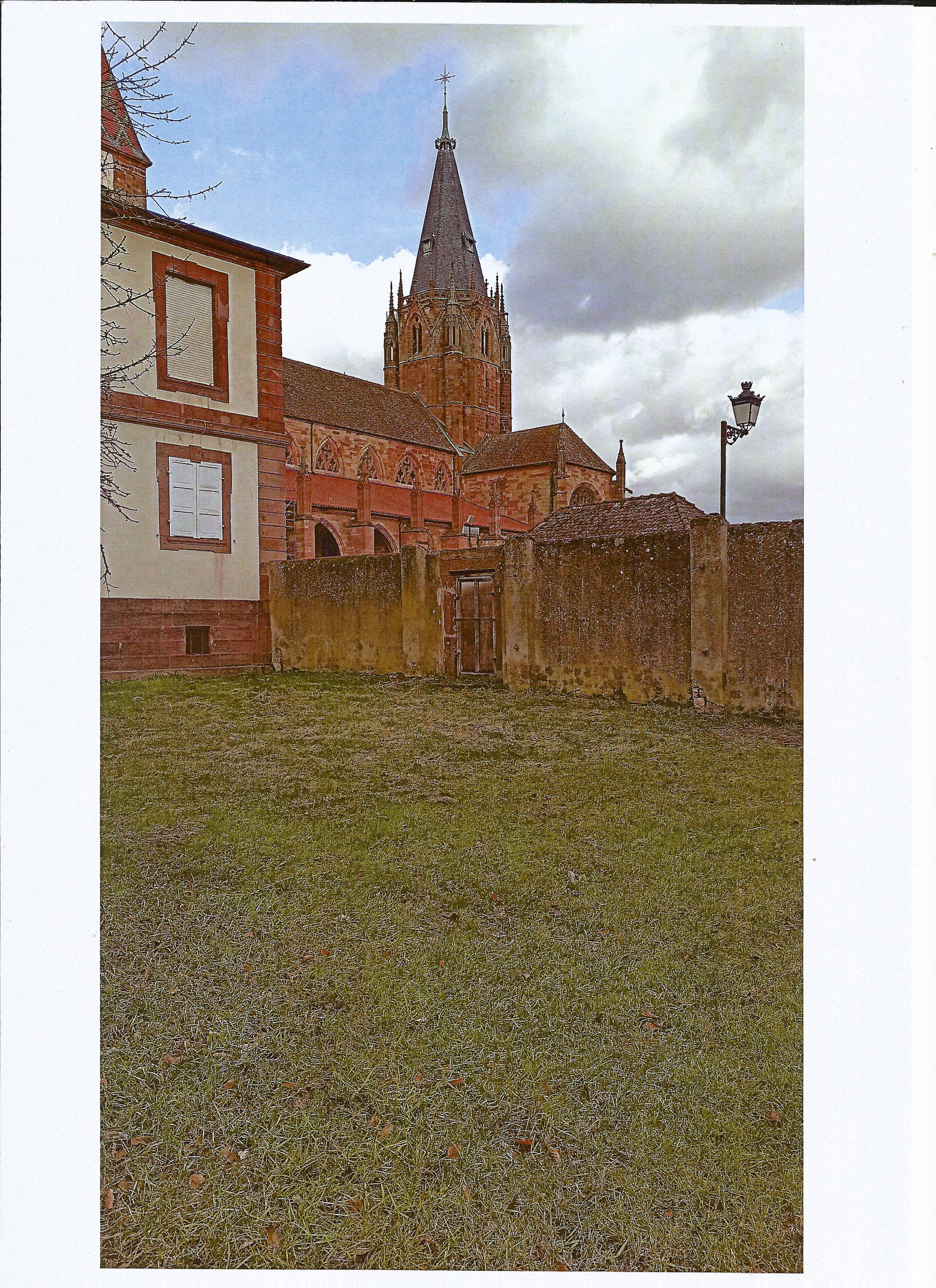 Cet emplacement a été choisi pour que, lorsque l'on est au centre de la structure circulaire, on ait une vue sur l'abbatiale d'un côté (image 1) et la tour des remparts de l'autre (image 2).